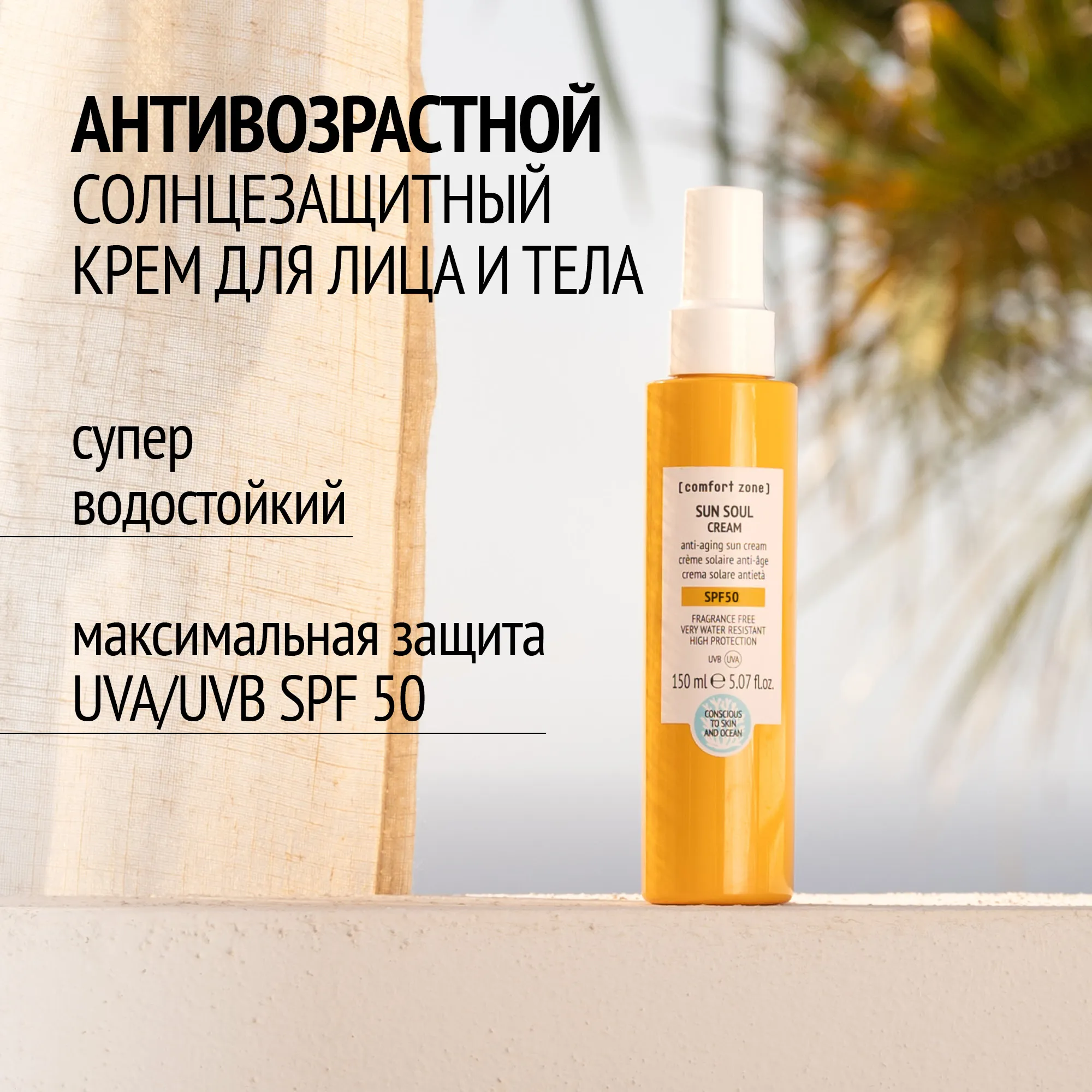 Безопасен для кожи и океана, благодаря чему идеально подходит для тех, кто занимается водными видами спорта и физической активностью на открытом воздухе.