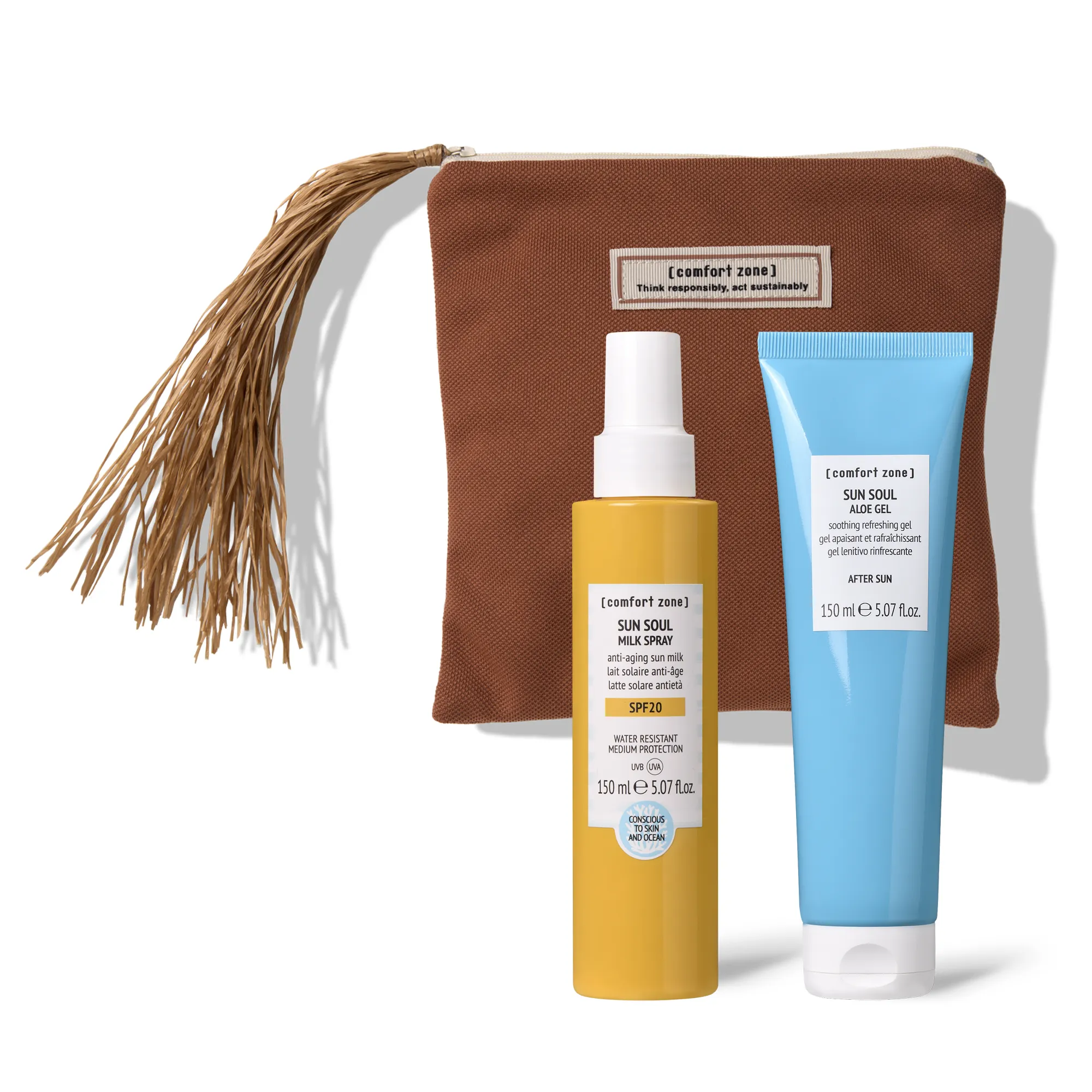 Покупайте связку из профессиональных средств до и после загара по сверхвыгодной цене, а в дополнение к ним получайте стильный аксессуар, который дополнит ваш образ этим летом!