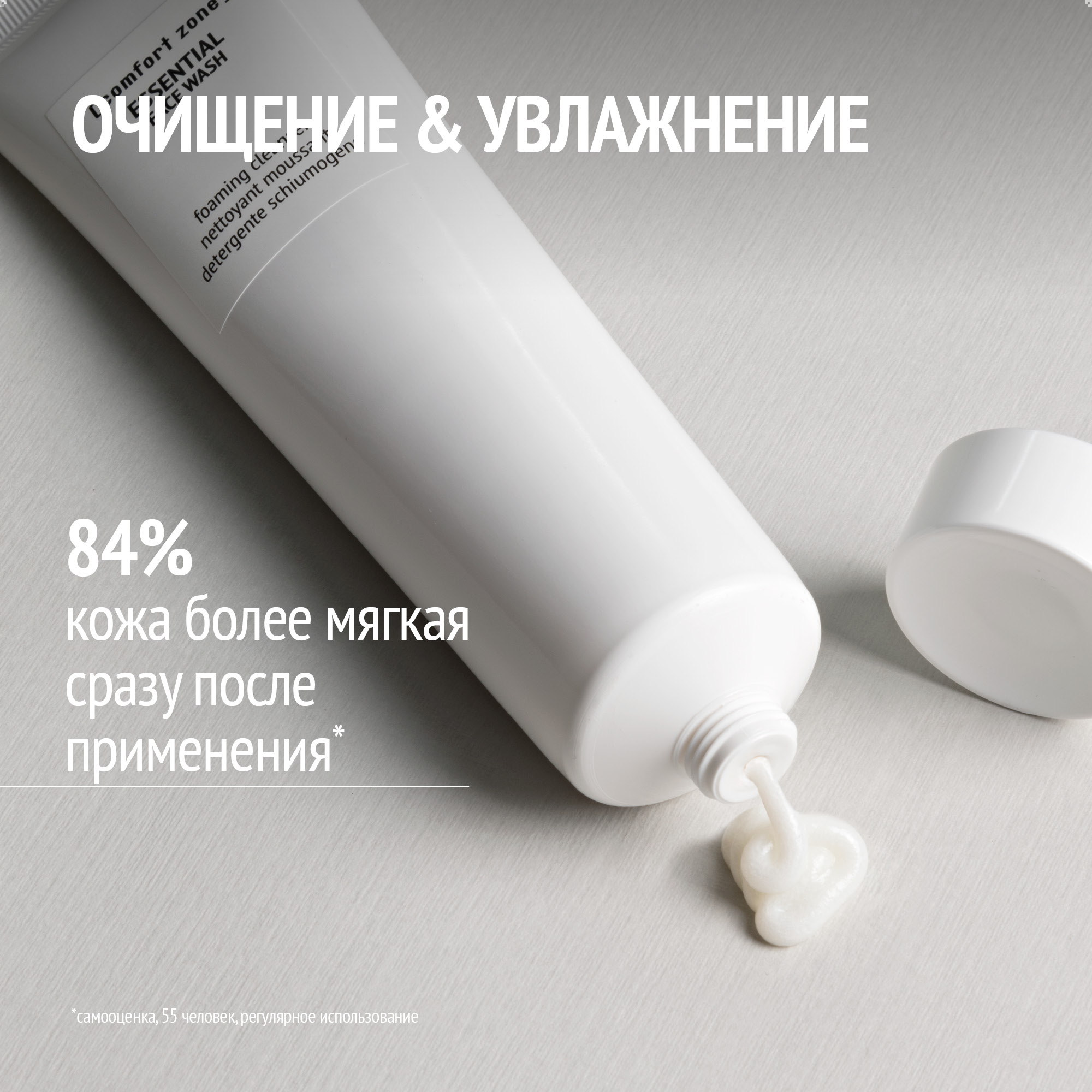 Крем при взаимодействии с водой превращается в нежную пену. Бетаин, входящий в состав средства, натуральный осмолит, сохраняет водный баланс кожи.