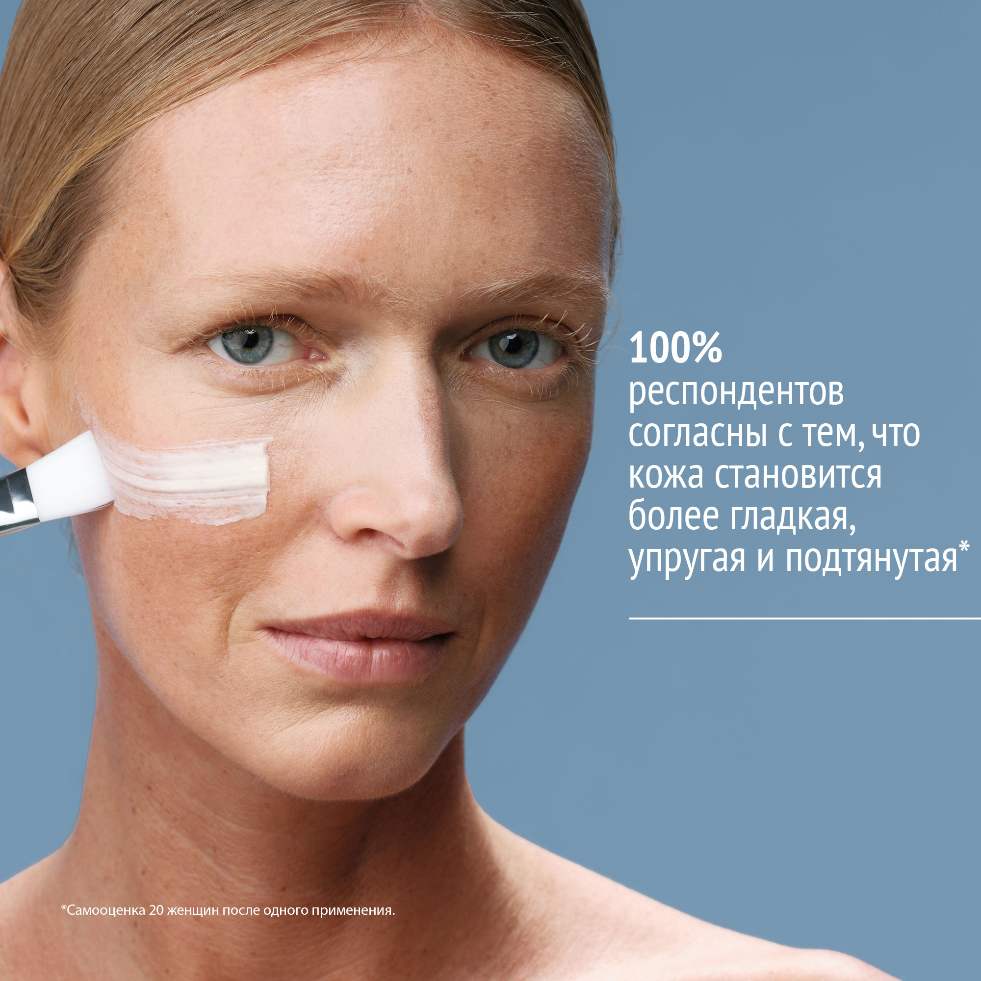 Крахмал тапиоки обеспечивает эффект лифтинга. Макрогиалуроновая кислота увлажняет и выполняет функцию гидро-филлера. Экстракт Ахиллеи Миллефолиум стимулирует синтез коллагена и защищает его от разрушения, ингибируя фермент металопротеиназу.