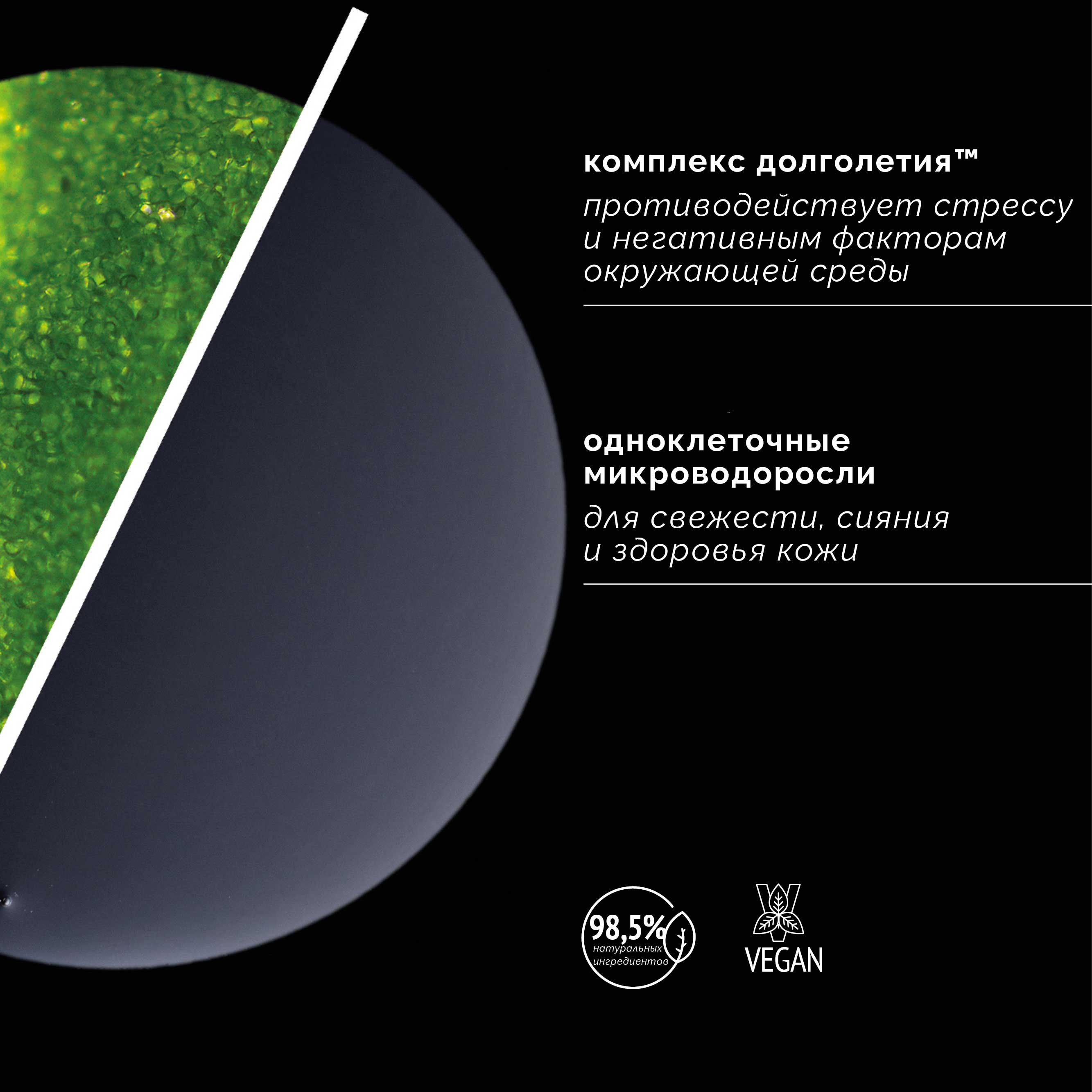 Обогащена 7 компонентами натурального увлажняющего фактора, экстрактом одноклеточных микроводорослей, ниацинамидом и антиоксидантным Комплексом Долголетия™.