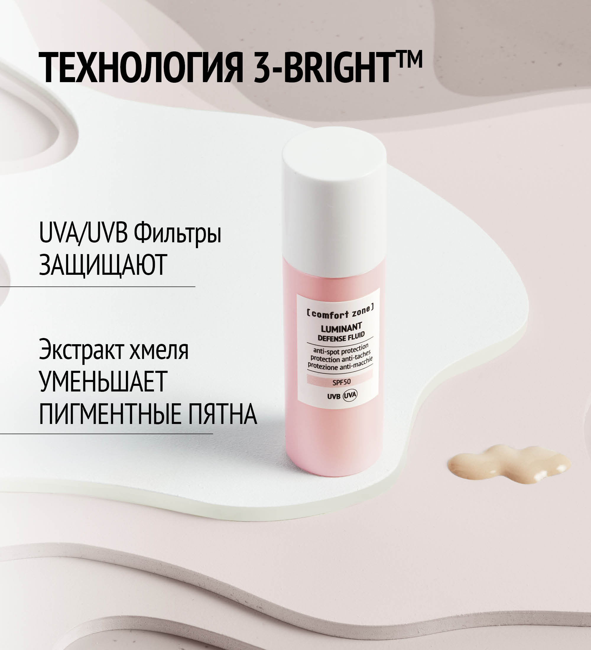 3-BRIGHT TECHNOLOGYTM — запатентованная технология с тройным эффектом: коррекция пигментных пятен, сияние, профилактика гиперпигментации.