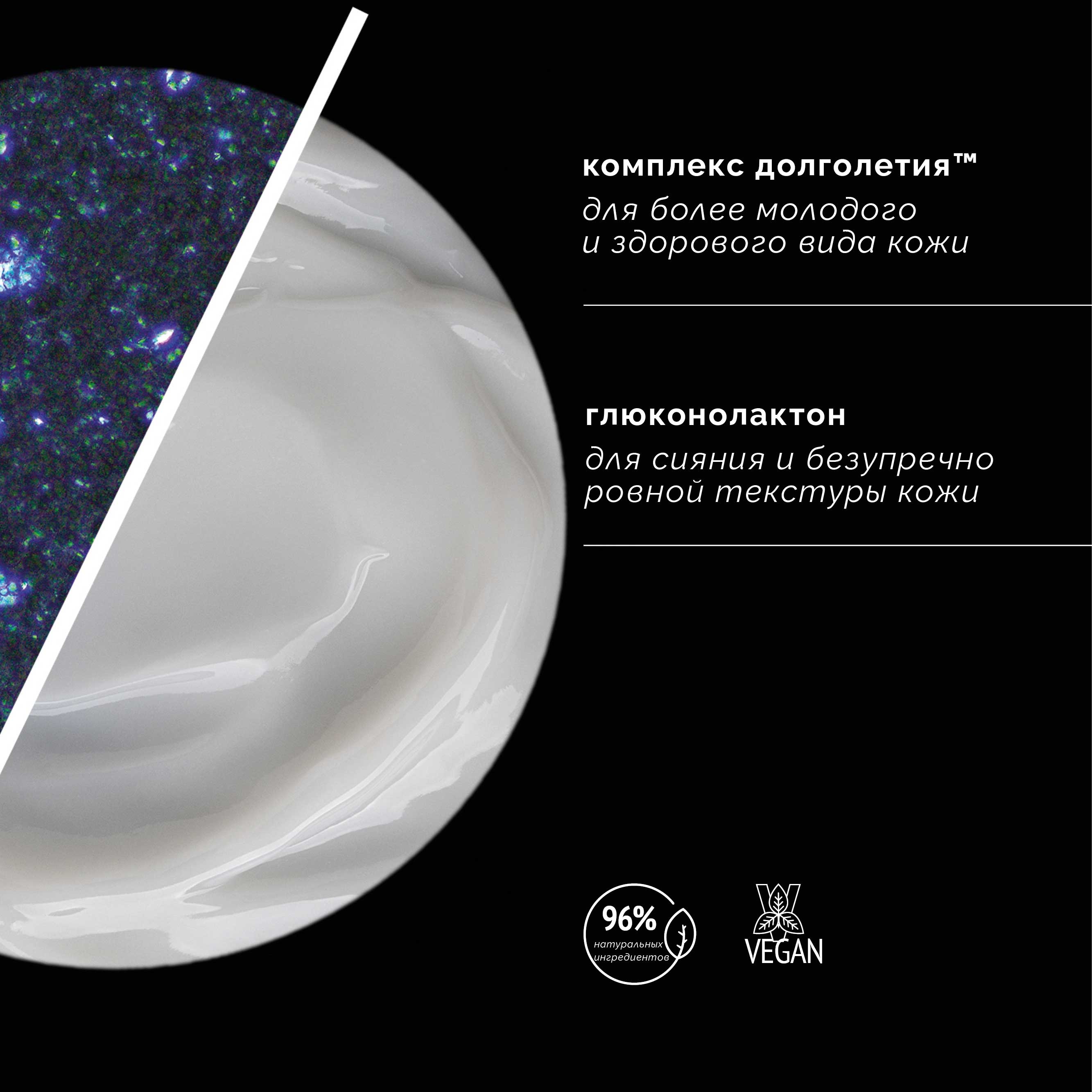 Ночной крем с глюконолактоном, альфа-глюкановыми дрожжами и Комплексом Долголетия™ оживляет и обновляет кожу, способствуя выведению токсинов и возвращая ей сияние и гладкость. Формула усиливает естественные процессы детоксикации, выравнивает тон кожи и повышает её упругость.