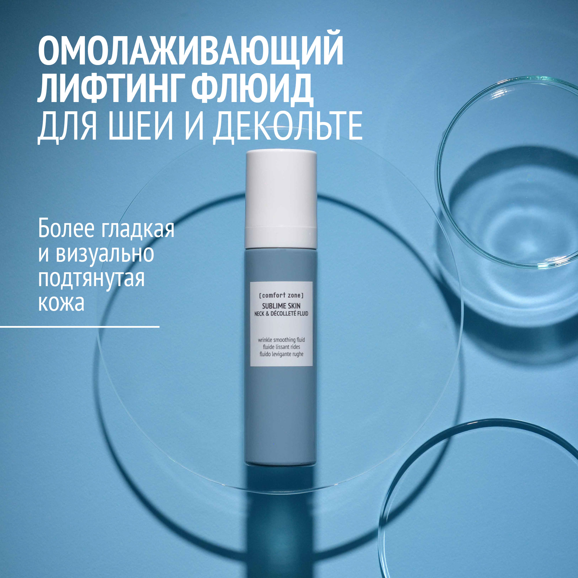 Специальный флюид для борьбы с дряблостью кожи и коррекции микронеровностей в области шеи и декольте. Легкая биомиметическая текстура моментально впитывается, обеспечивает увлажнение, уплотняет кожу и уменьшает выраженность горизонтальных морщин («колец Венеры»).