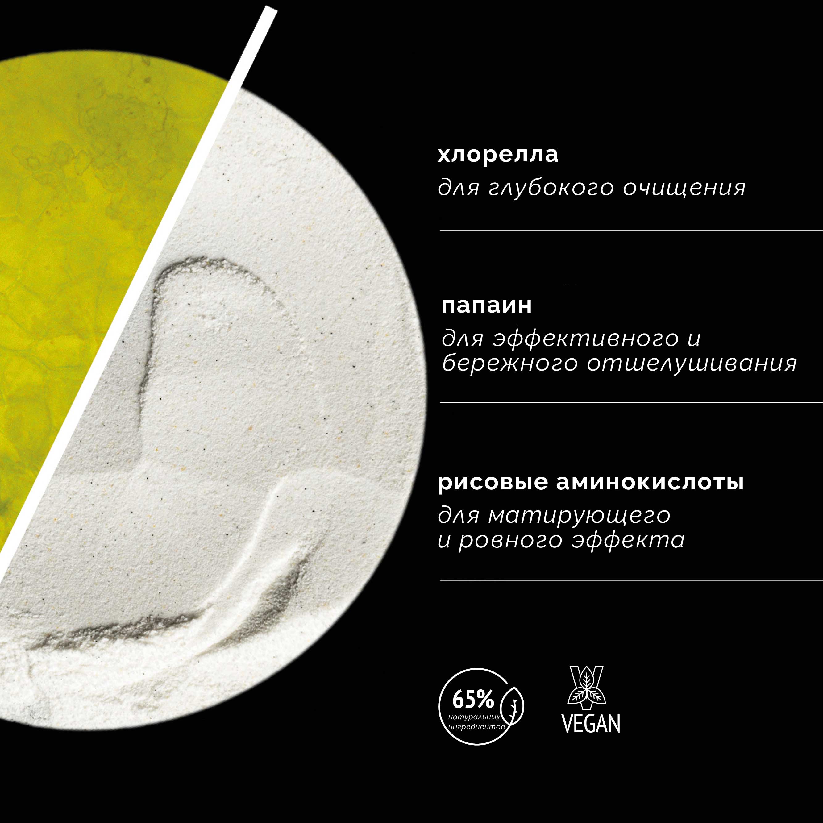 При контакте с водой невесомый порошок преобразуется в бархатистую пену для бережного отшелушивания. Комплекс мягко растворяет загрязнения и ороговевшие клетки, выравнивая микрорельеф и сужая поры. Рисовый крахмал абсорбирует излишки кожного сала, обеспечивая матовый эффект и профилактику несовершенств.