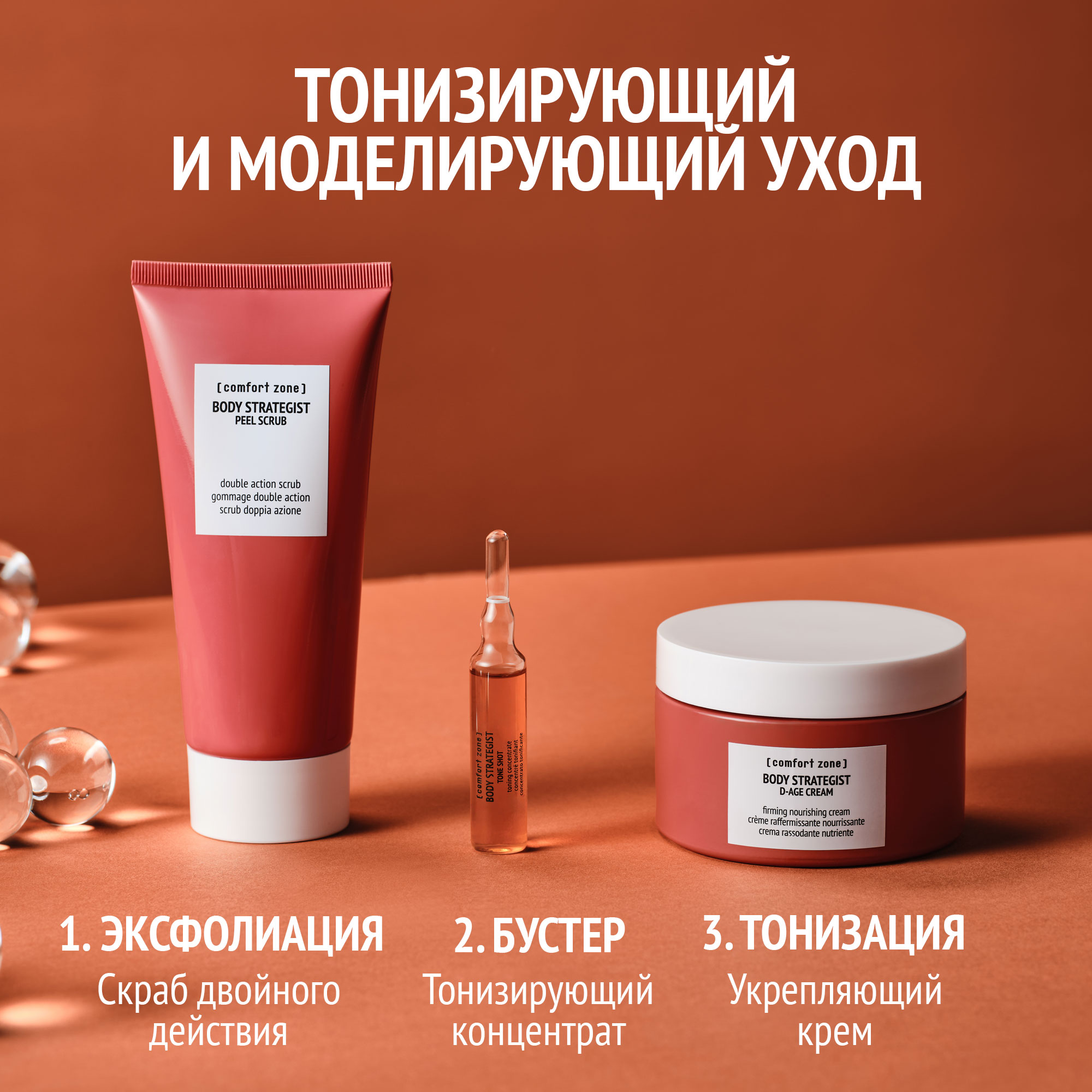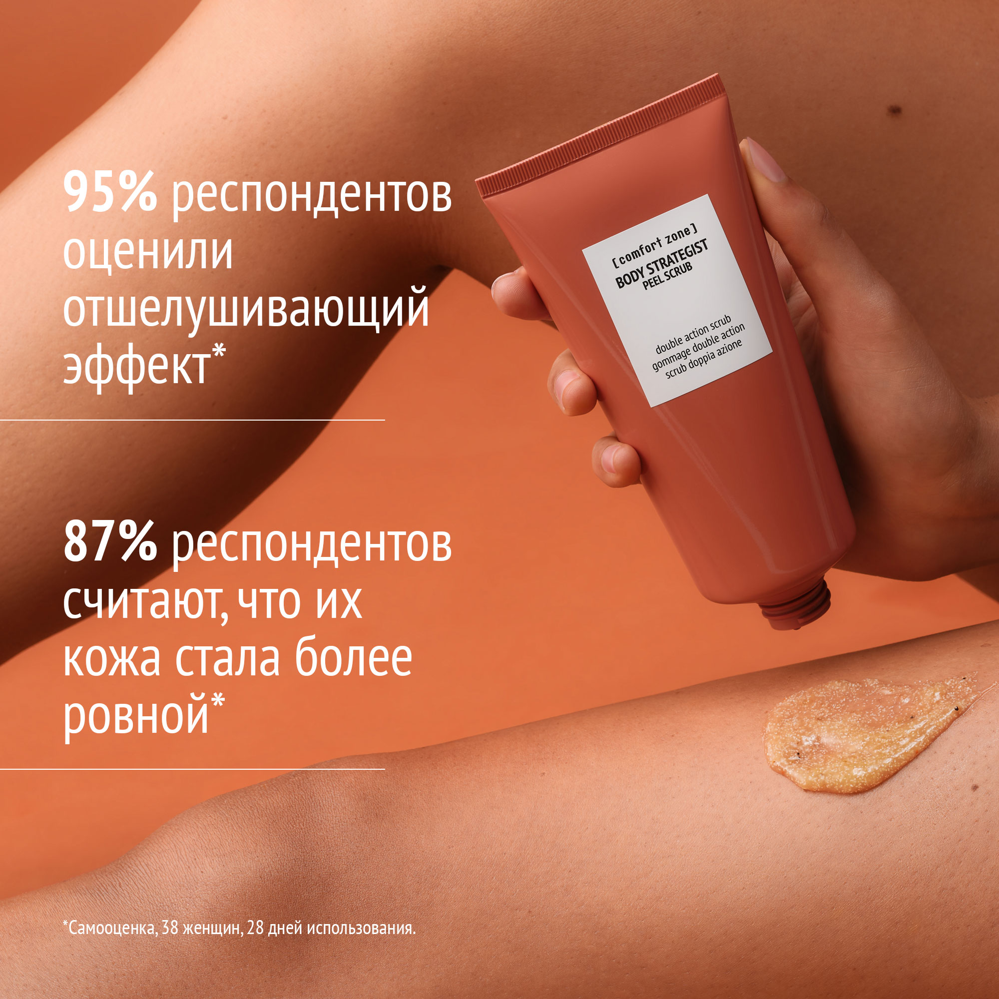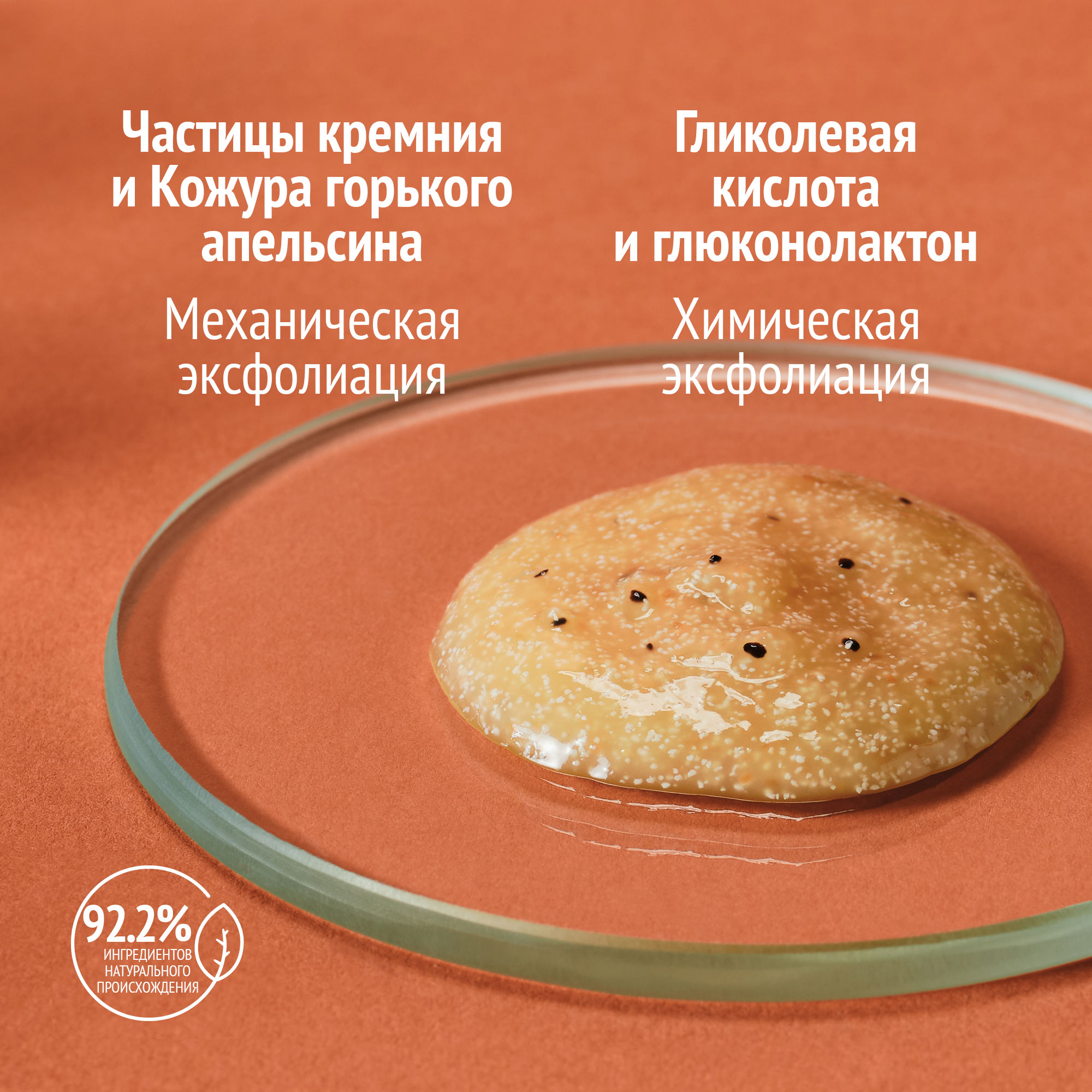 Пилинг для тела с частицами диоксида кремния, апельсиновой кожурой и 10% альфа-полигидроксикислотами обеспечивает механическое и химическое отшелушивание омертвевших клеток кожи.