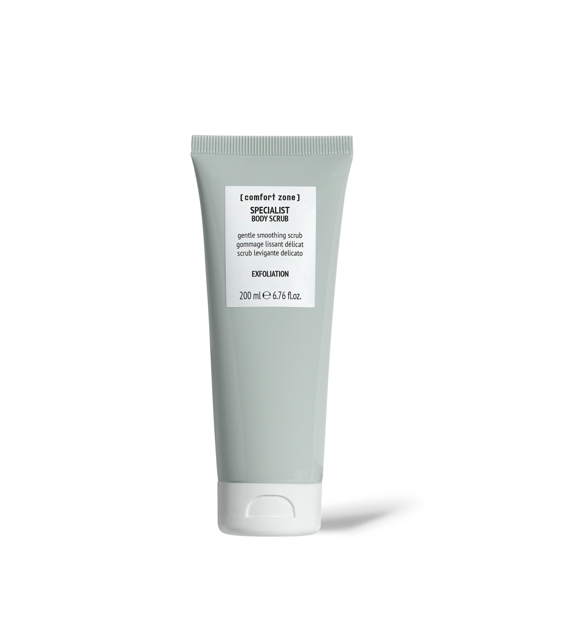 Двухфазный механический скраб гарантирует, что кожа сразу же станет более гладкой и мягкой.